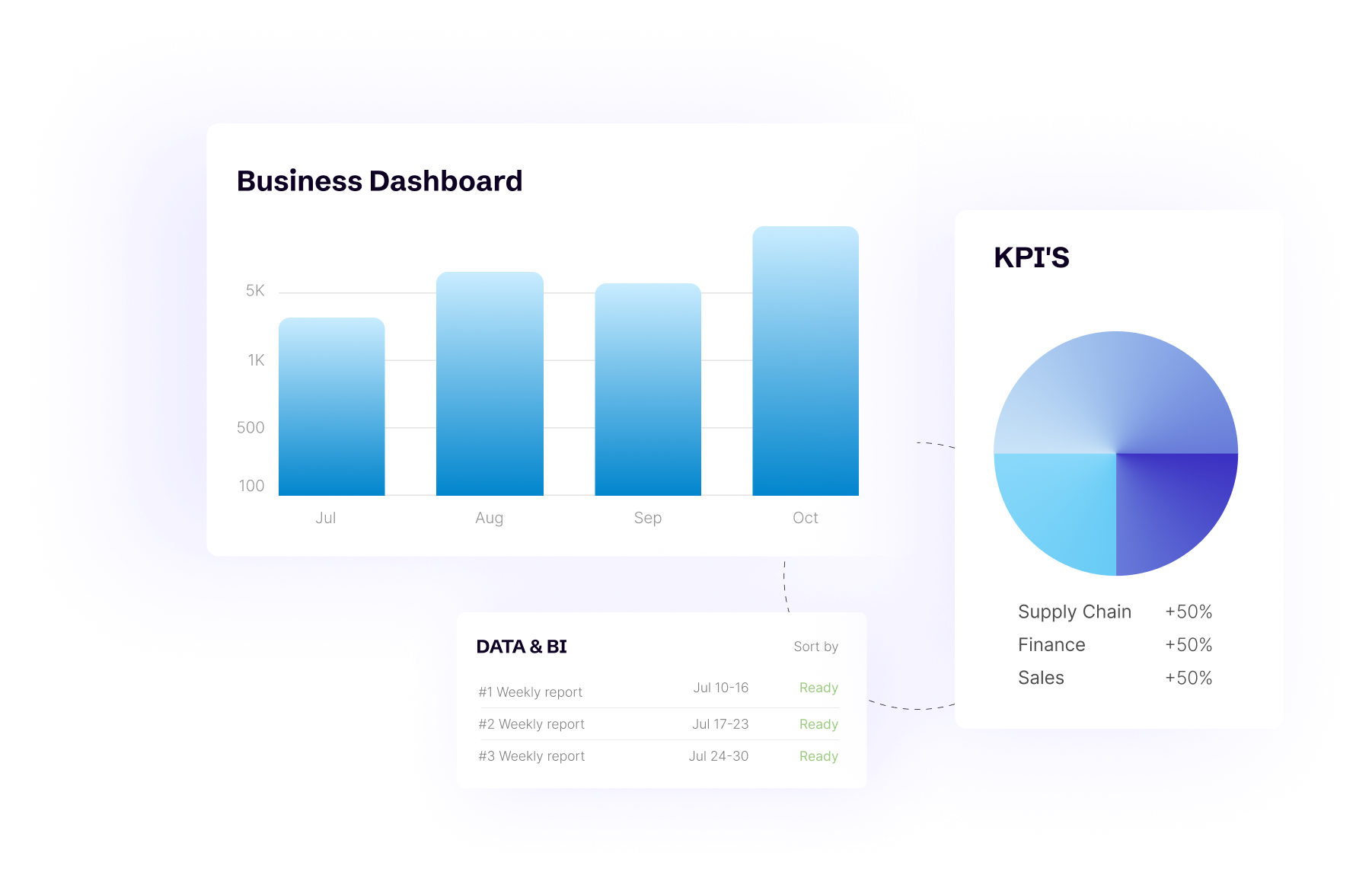 ה-Dashboards שאנו מתאימים למנהלי הארגון מבוססים על מערכת ויזואלית חכמה המציגה בפשטות ובהירות את התובנות העסקיות העיקריות בכל פעילות שלהם בארגון.
